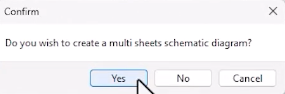 - Confirmation: HydroSym will display a prompt: "Do you wish to create a multi-sheet diagram?" Click Yes.